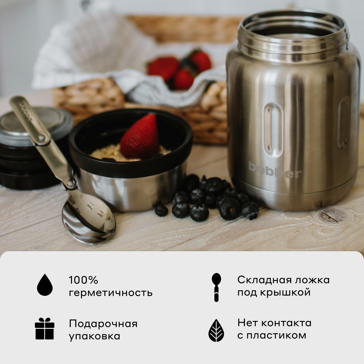 Bobber Термос для еды, вакуумный, бытовой, "Bobber" (700 мл, Матовый) 4 750 ₽