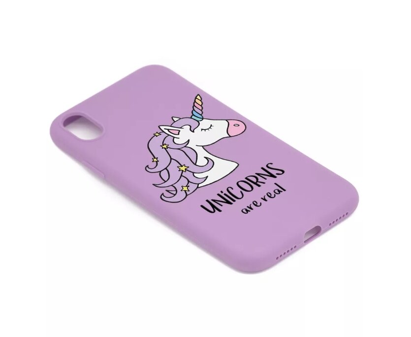 Чехол на iPhone XR матовый фиолетовый / Чехол на Айфон XR с принтом "Unicorns are real" 399 ₽