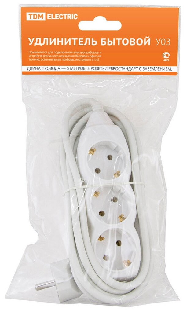 Удлинитель бытовой У03 3 гнезда, 5 метров, с заземлением ПВС 3х1мм2 16А/250В TDM SQ1303-0002 (1 шт.)