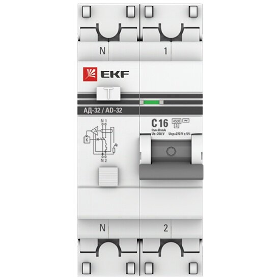Дифференциальный автомат EKF PROxima АД-32 1P+N 16А/30мА (хар. C, AC, электронный, защита 270В) 4,5кА (DA32-16-30-pro) информация: