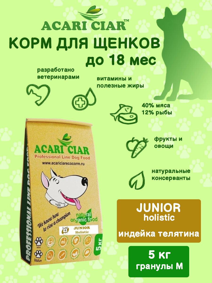 Корм сухой для щенков Acari Ciar JUNIOR HOLISTIC 5 кг (медиум гранула) 3 725 ₽