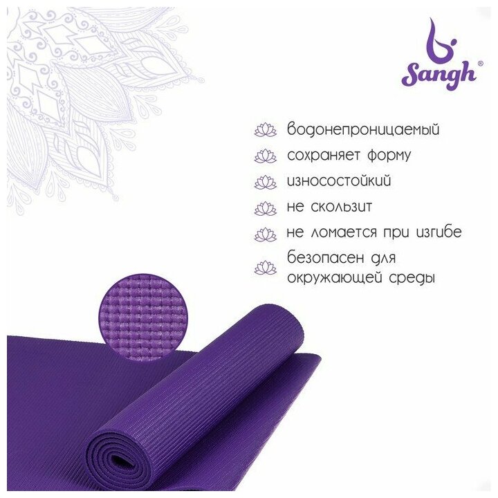 Коврик для йоги Sangh, 173×61×0,5 см, цвет фиолетовый информация: