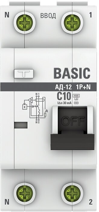 DA12-10-30-bas Дифференциальный автоматический выключатель EKF АД-12 Basic 1П+N 10А 30мА, тип AC, 4.5кА, C