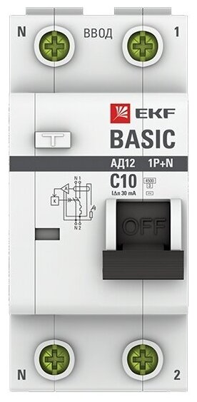 DA12-10-30-bas Дифференциальный автоматический выключатель EKF АД-12 Basic 1П+N 10А 30мА, тип AC, 4.5кА, C