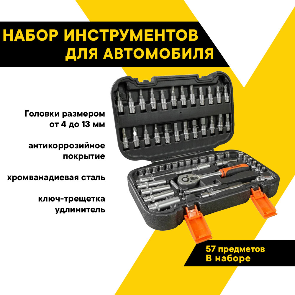 Набор инструмента 57 пр. 1/4'' АвтоДело