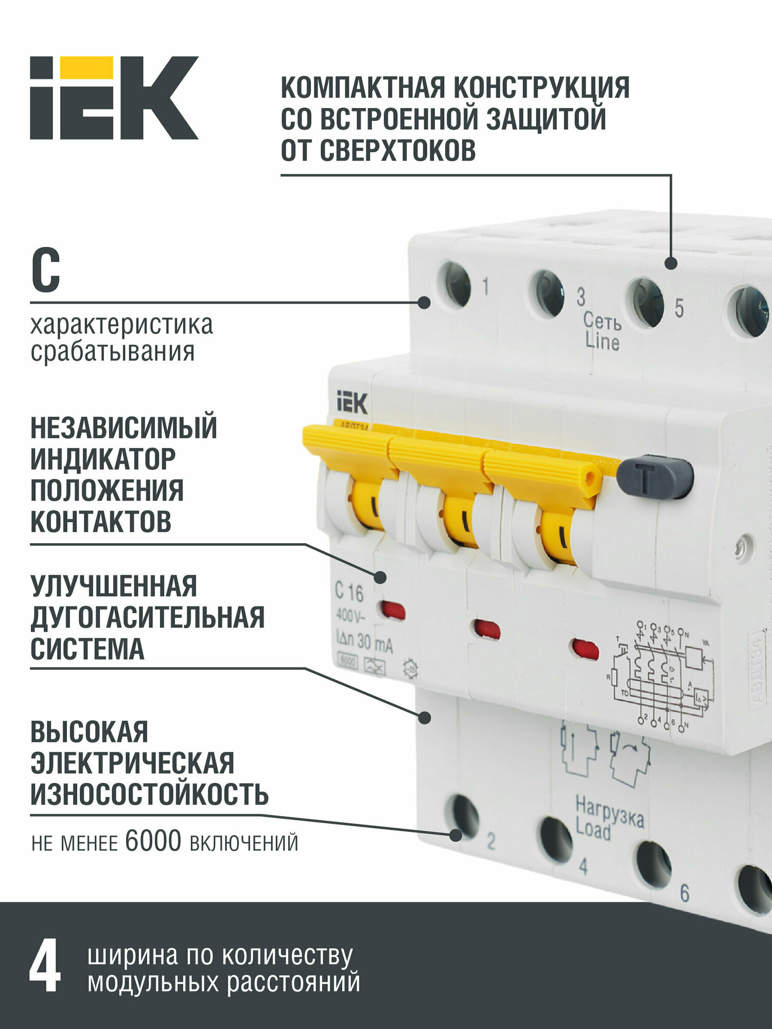 Автоматический выключатель дифференциального тока АВДТ34 C16 30мА IEK информация: