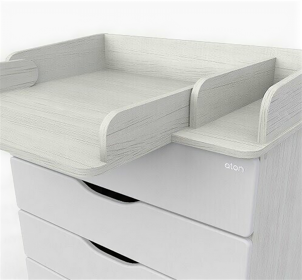 Атон Комод детский с пеленальным столиком Сириус-2 Wood 804 ПВХ, белый премиум, 4 ящика