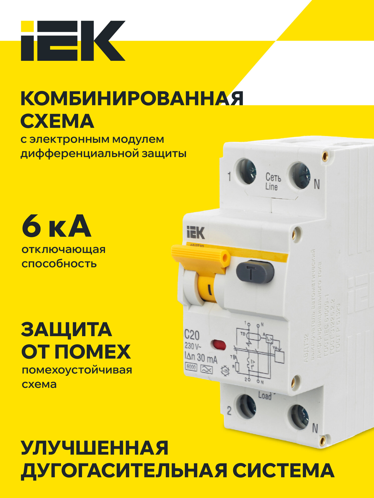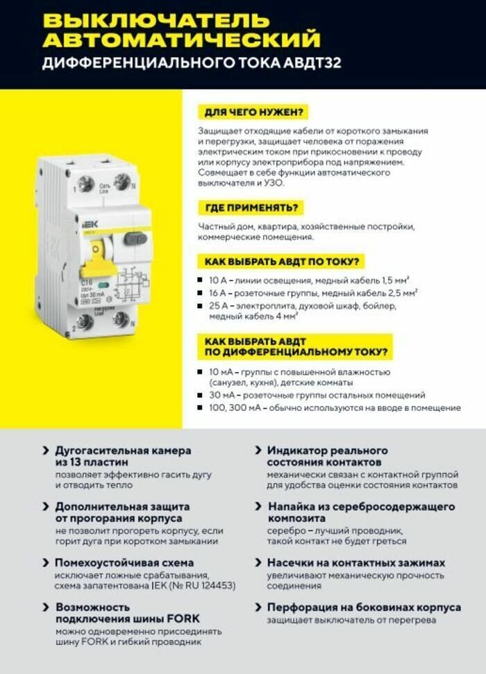 Автоматический выключатель дифференциального тока АВДТ32 C20 IEK информация: