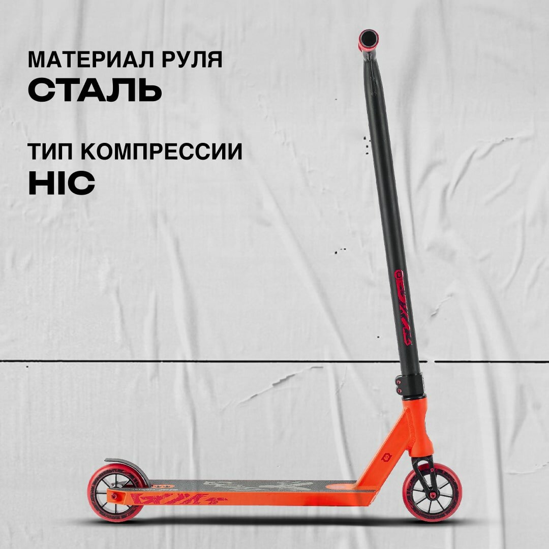 10 цен на Самокат SKIP Goat (2023) трюковой для взрослых, для детей, алюминиевая дека, стальной руль, компрессия HIC, красно-оранжевый цвет, рост 155-165