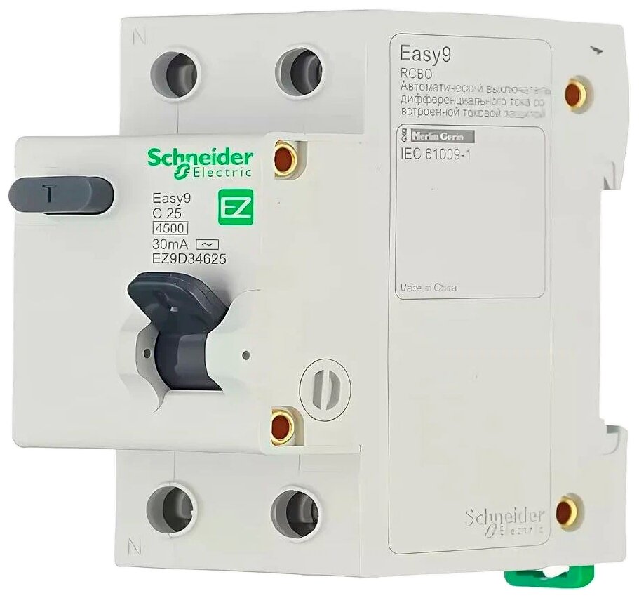 Отзывы на Schneider electric Schneider-electric EZ9D34625 ДИФ. АВТ. Выкл. EASY 9 1П+Н 25А 30мА C AC 4,5кА 230В S