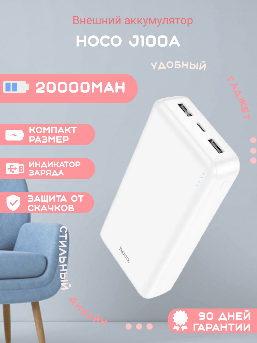 Отзывы на Портативный аккумулятор HOCO J100A High-ranking, 2.1A, 20000 мА⋅ч, белый