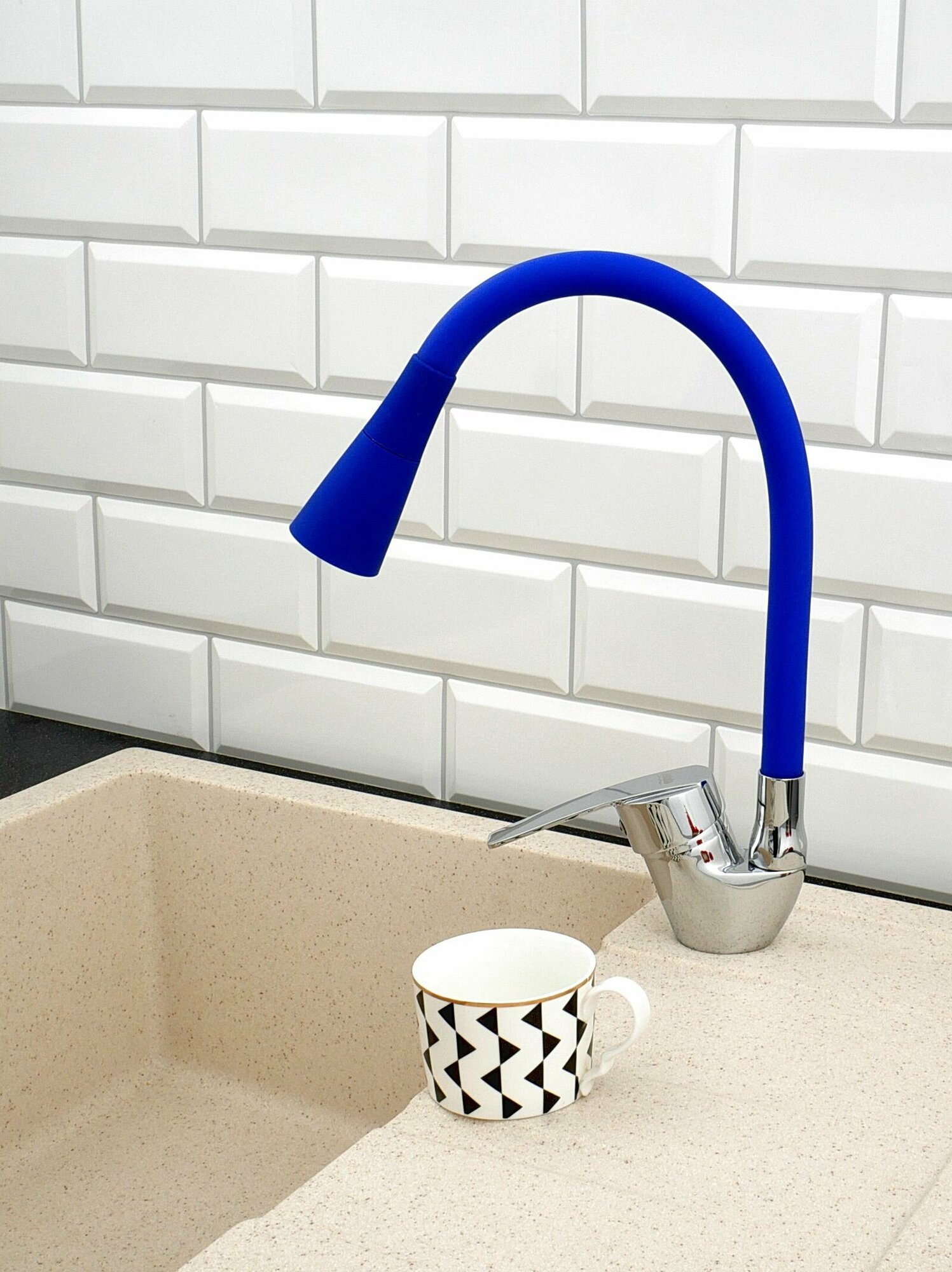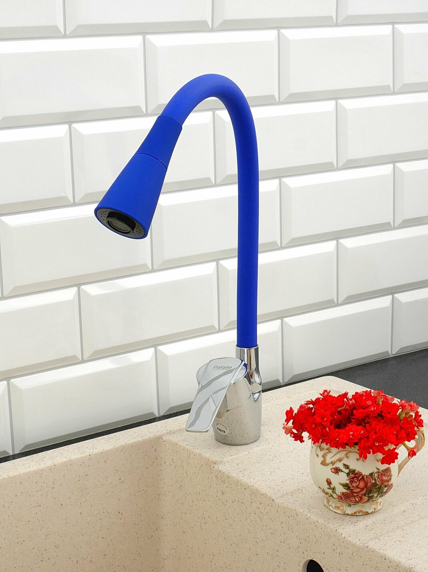 Смеситель для кухни Potato P59278-12 c гибким синим изливом 2 типа струи, картридж 35 мм, крепление гайка информация: