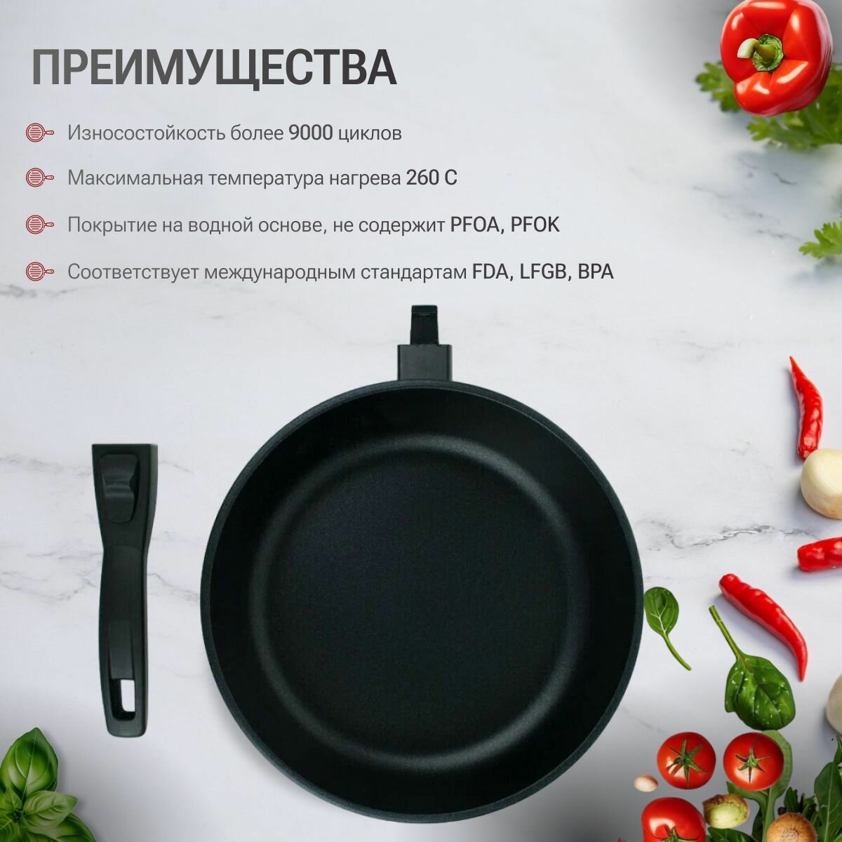 Сковорода с антипригарным покрытием из литого алюминия со съемной ручкой диаметр 22 см информация: