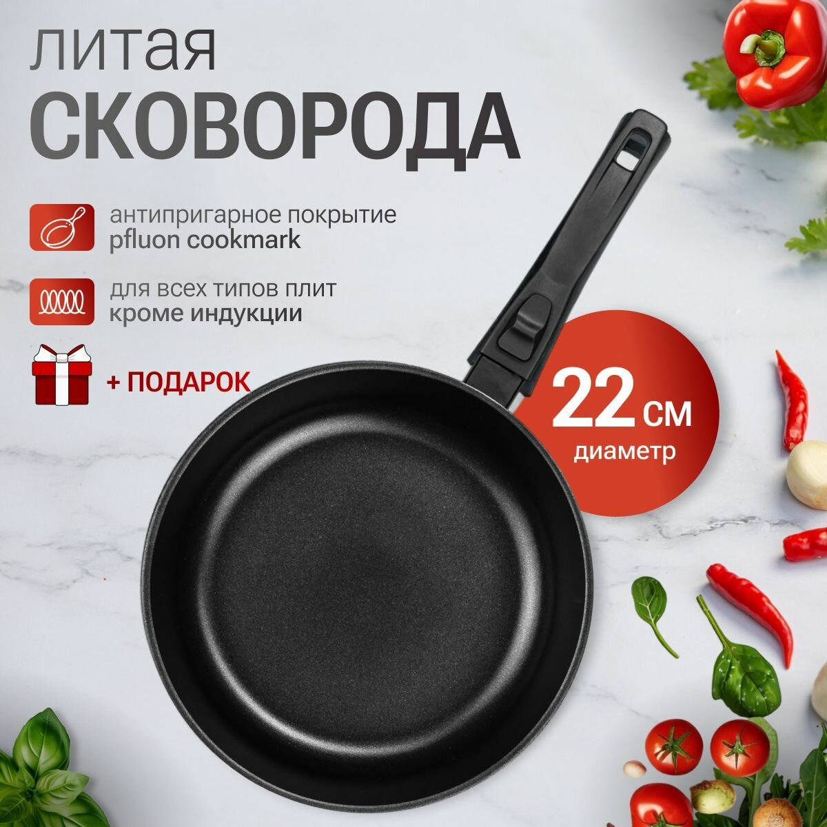 10 цен на Сковорода с антипригарным покрытием из литого алюминия со съемной ручкой диаметр 22 см