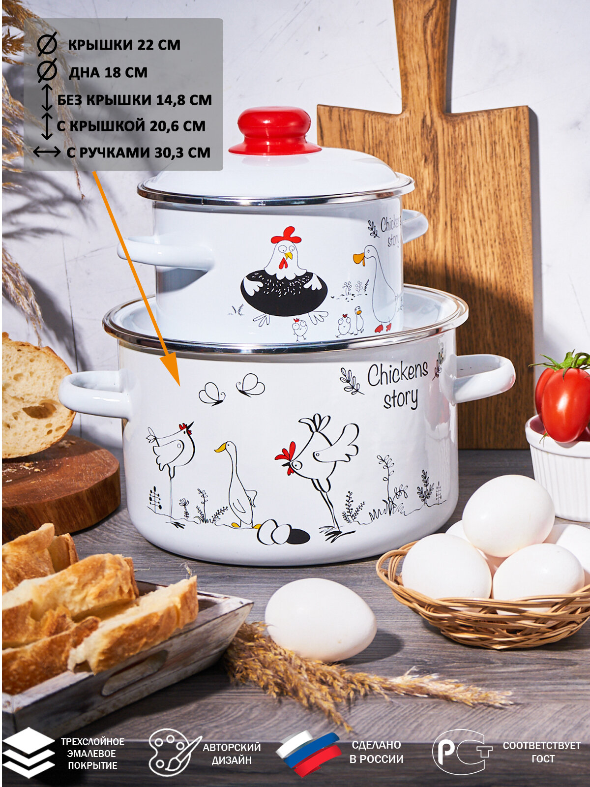 Кастрюля эмалированная ТМ FOOD ATELIER Chickens’stories, с крышкой, 5,5 л информация: