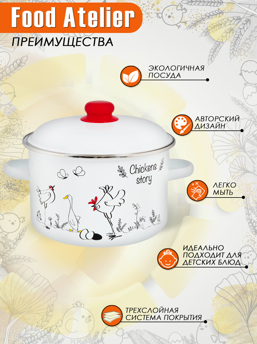 Отзывы на Кастрюля эмалированная ТМ FOOD ATELIER Chickens’stories, с крышкой, 5,5 л