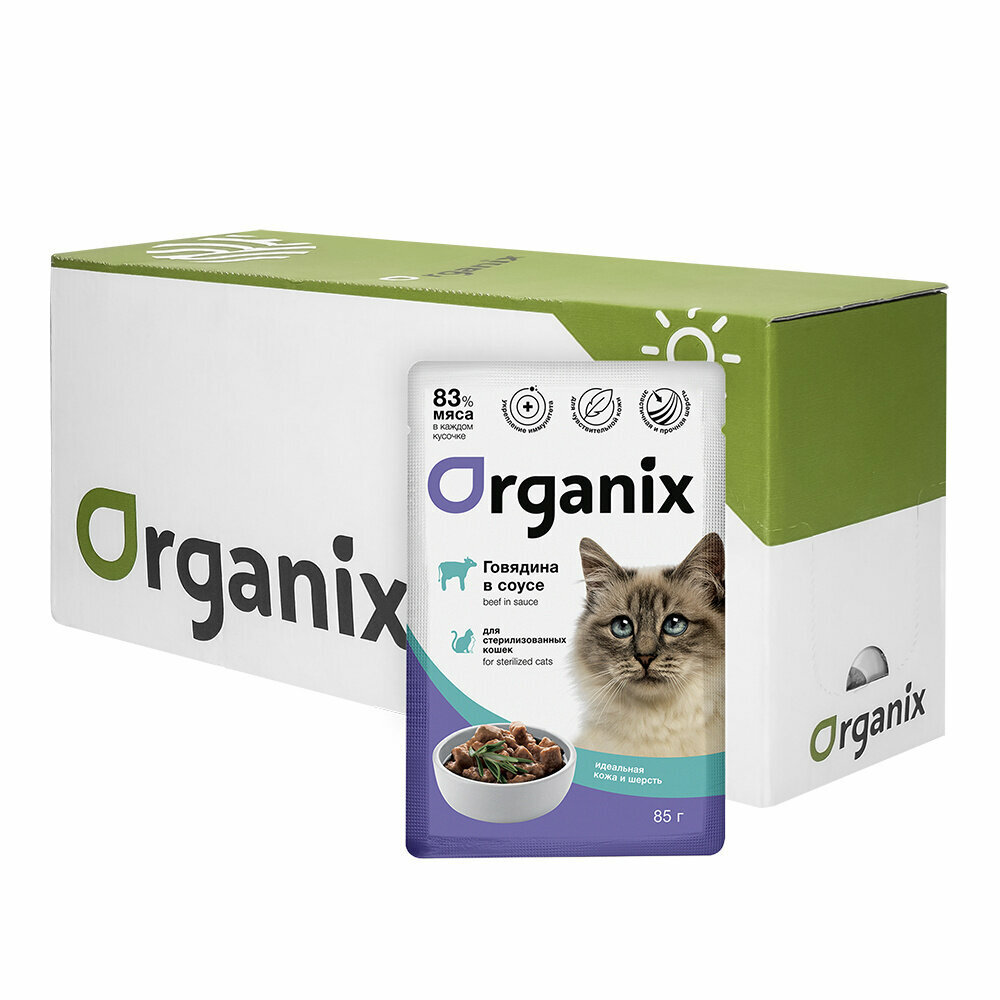 Корм Organix (в соусе) для стерилизованных кошек идеальная кожа и шерсть, с говядиной, 85 г x 25 шт