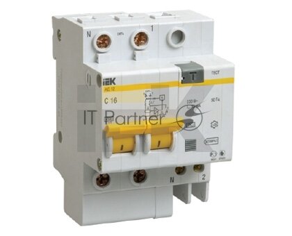 Автомат дифференциальный IEK АД-12 (MAD10-2-016-C-030) 16А 30 мА 1P+N тип АС 4,5 кА 1 232 ₽