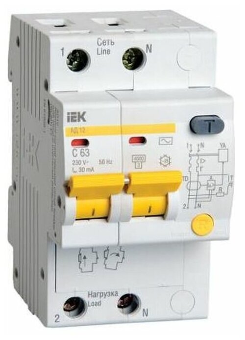 Дифференциальный автоматический выключатель АД12 2Р 63А 30мА IEK
