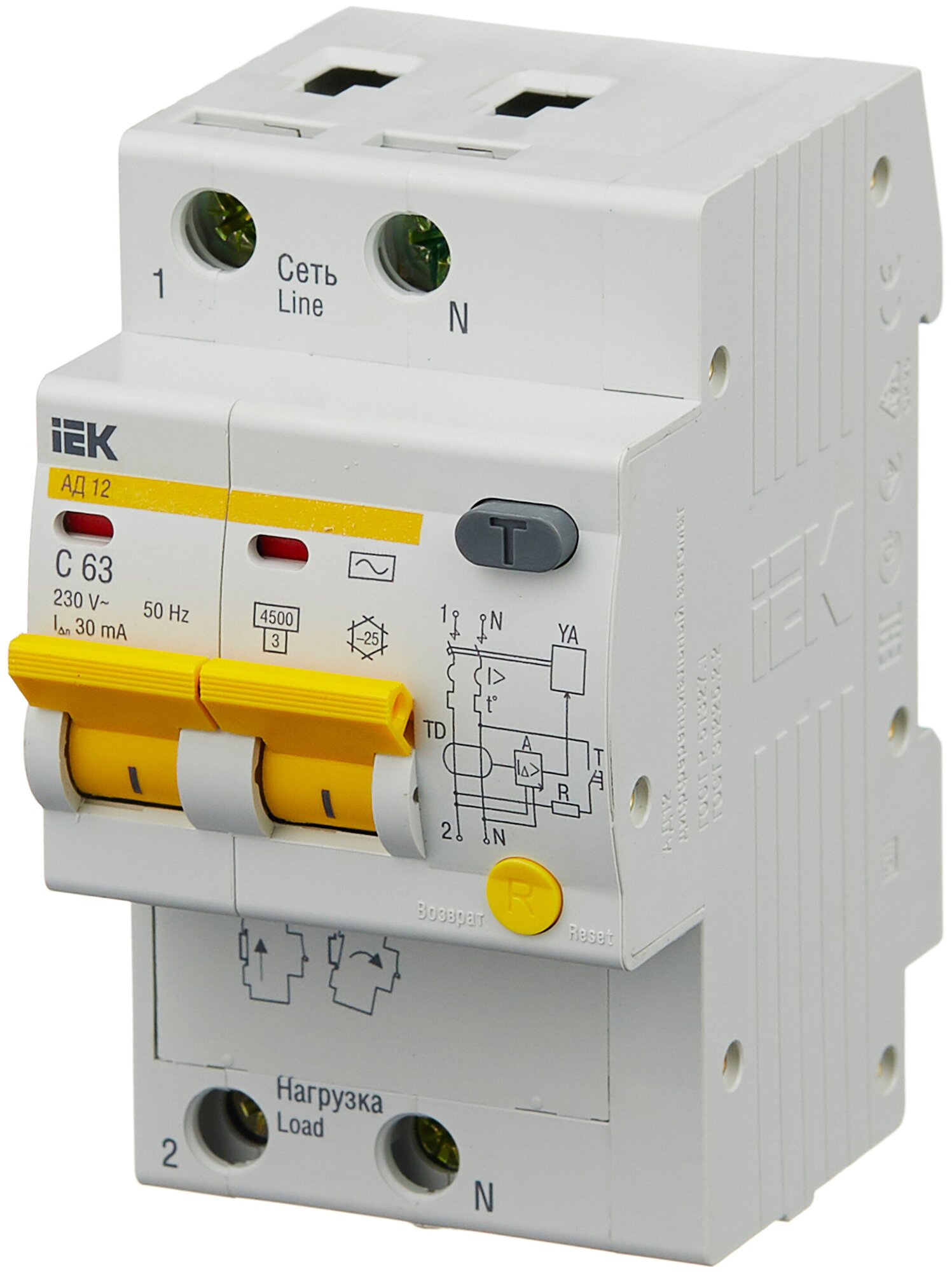 Дифференциальный автоматический выключатель АД12 2Р 63А 30мА IEK