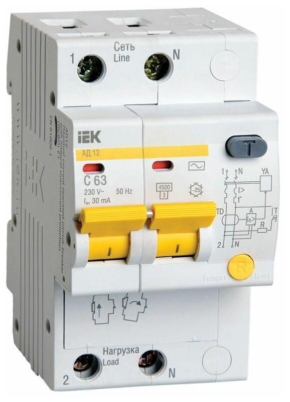 Iek MAD10-2-063-C-030 Диф.автомат АД12 2Р 63А 30мА ИЭК информация: