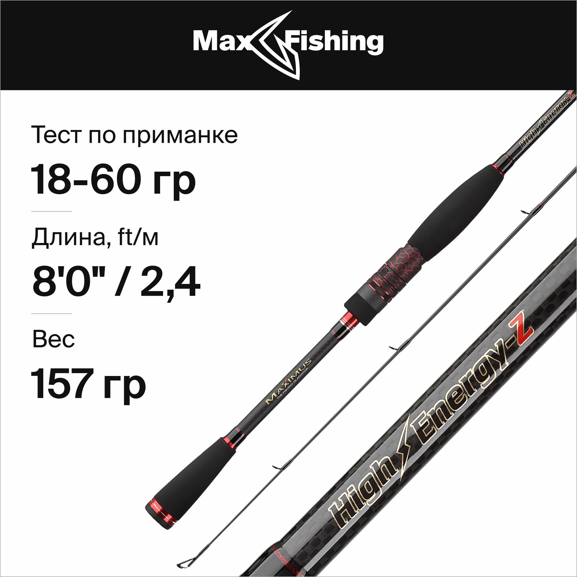 Спиннинг для рыбалки Maximus High Energy-Z Jig 24H 18-60гр, 240 см, для ловли окуня, щуки, судака, жереха / удилище спиннинговое информация:
