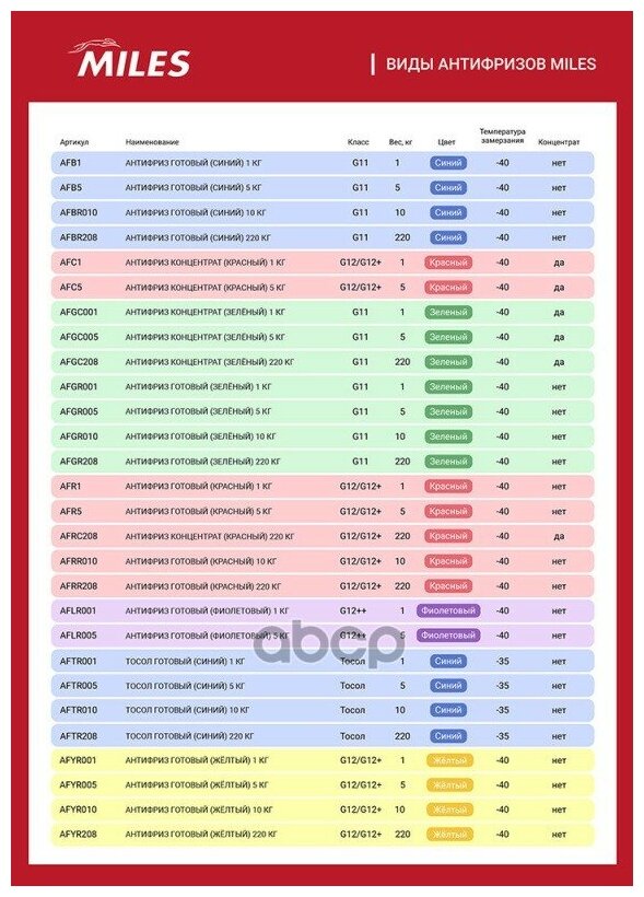 0 отзывов, средняя оценка 0. Чтобы купить «MILES AFGC001 Антифриз концентрат G11 (зеленый) 1 кг.» по лучшей цене мы сканируем авито, алиэкспресс, маркет, озон, савеловский, плеер, горбушку, беру, официальные сайты и находим минимальную. Администрация не несет ответсвенность актуальность цен на MILES AFGC001 Антифриз концентрат G11 (зеленый) 1 кг., более подробно узнавайте на сайте магазина.
