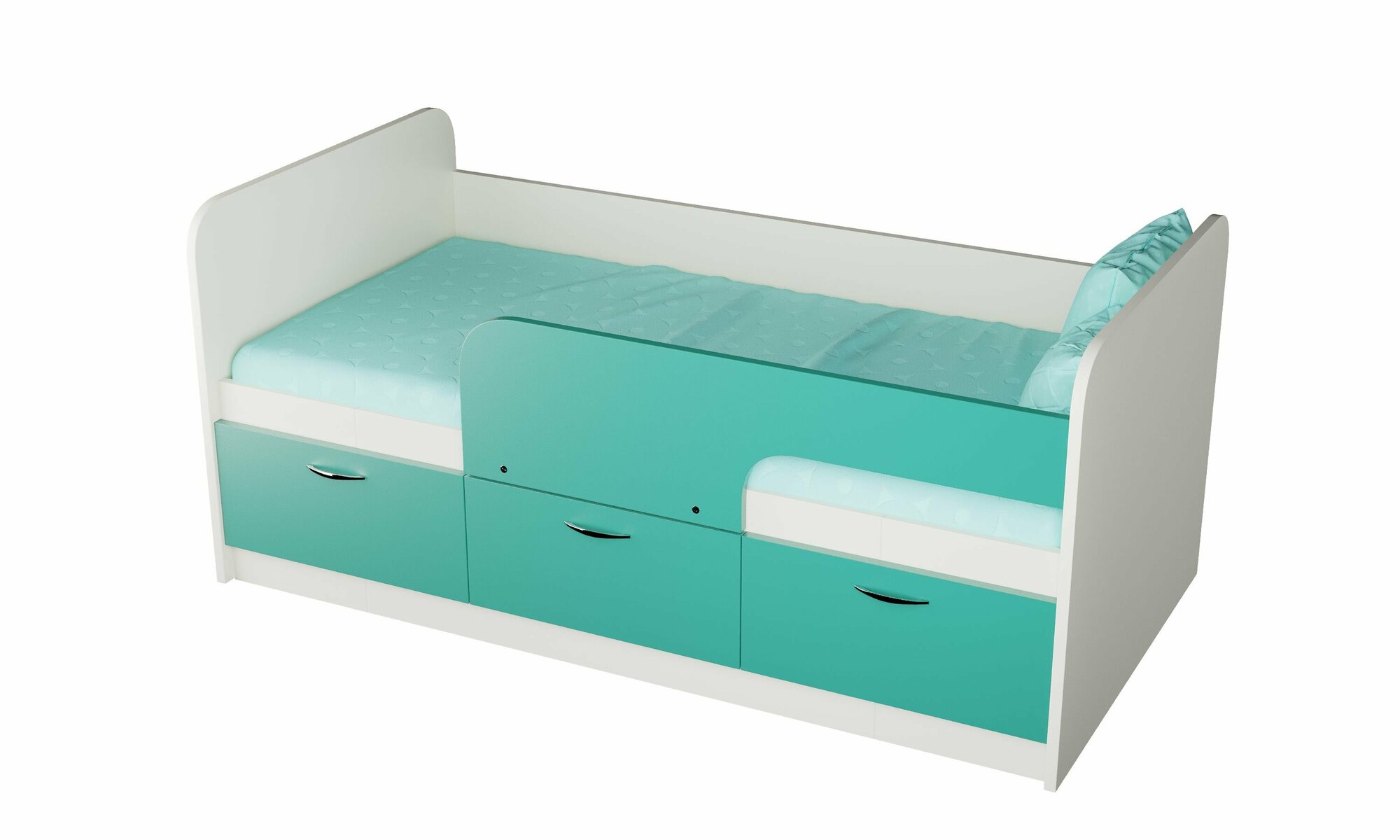Детский диван-кровать Майя 90х200 см морская волна с выкатным ящиком и бортиком Кровать детская от 3х лет Без матраса
