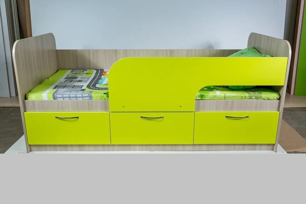 VERA-mebel детская кровать Радуга-2, 160х80см. цвет каркаса цвет шимо, фасад лайм информация: