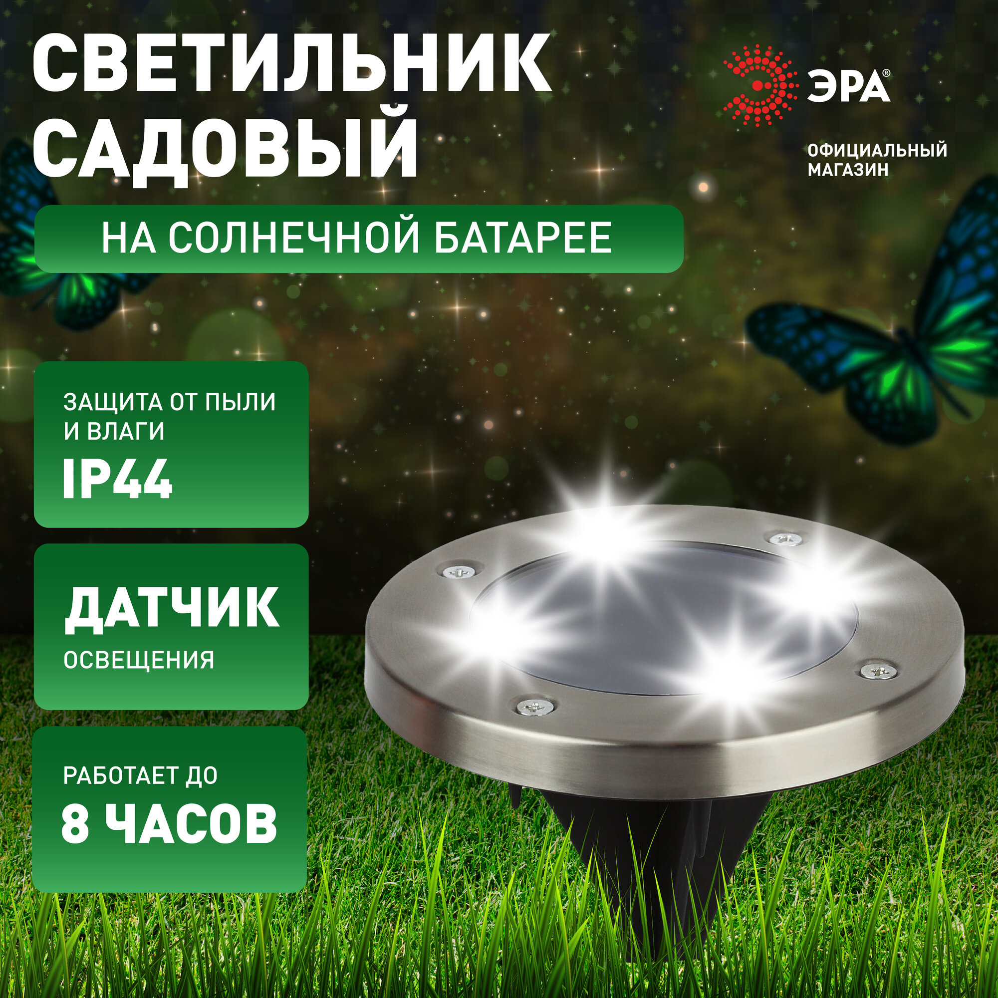 Светильник уличный ЭРА ERAST024-01 на солнечной батарее подсветка Таблетка, сталь, пластик d 11 см 268 ₽