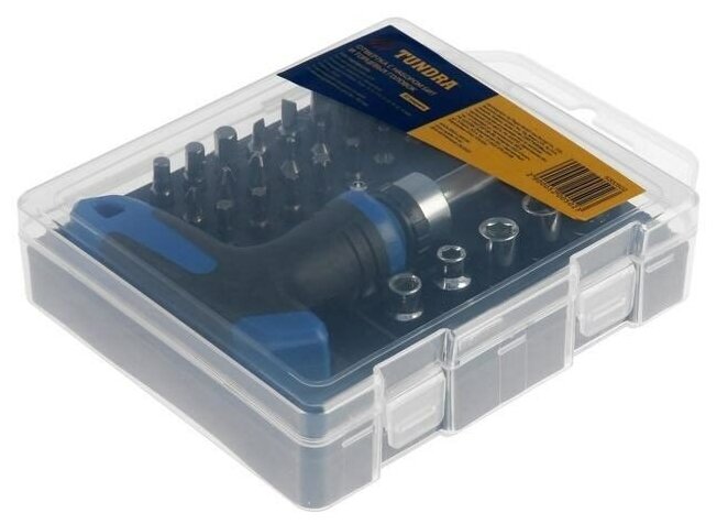 Отвертка с набором бит и торцевых головок тундра, в пластиковом кейсе, 32 предмета./В упаковке шт: 1