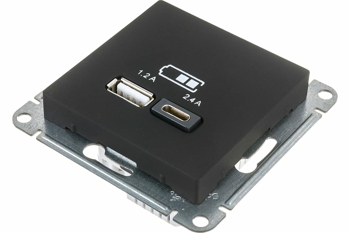 Механизм розетки USB AtlasDesign A+С 5В/2.4А 2х5В/1.2А карбон SchE ATN001039