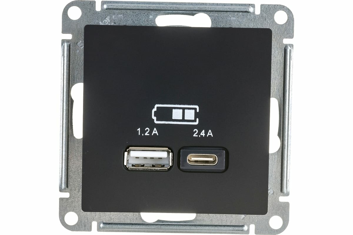 Розетка USB ATLASDESIGN A+С, 5В/2,4А, 2х5В/1,2 А, механизм, карбон () SCHNEIDER ELECTRIC ATN001039 (1 шт.)