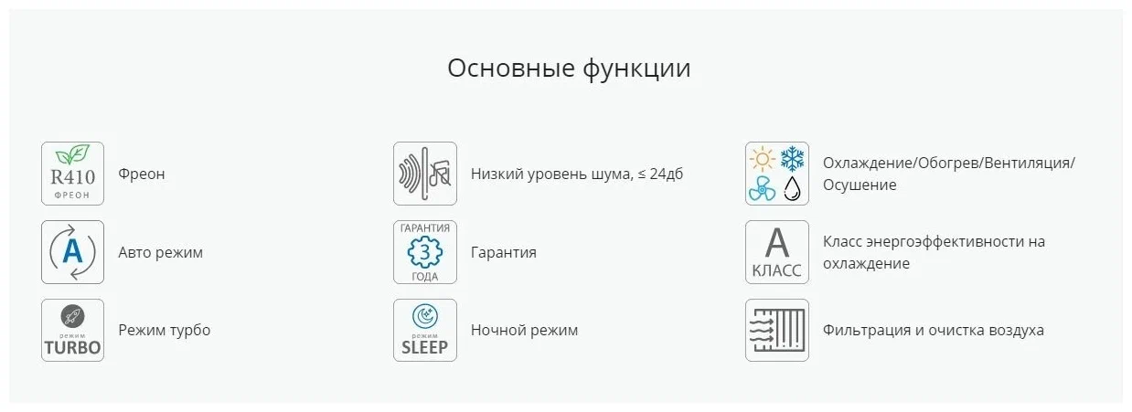 | Дополнительные режимы | ночной / осушение / турбо |