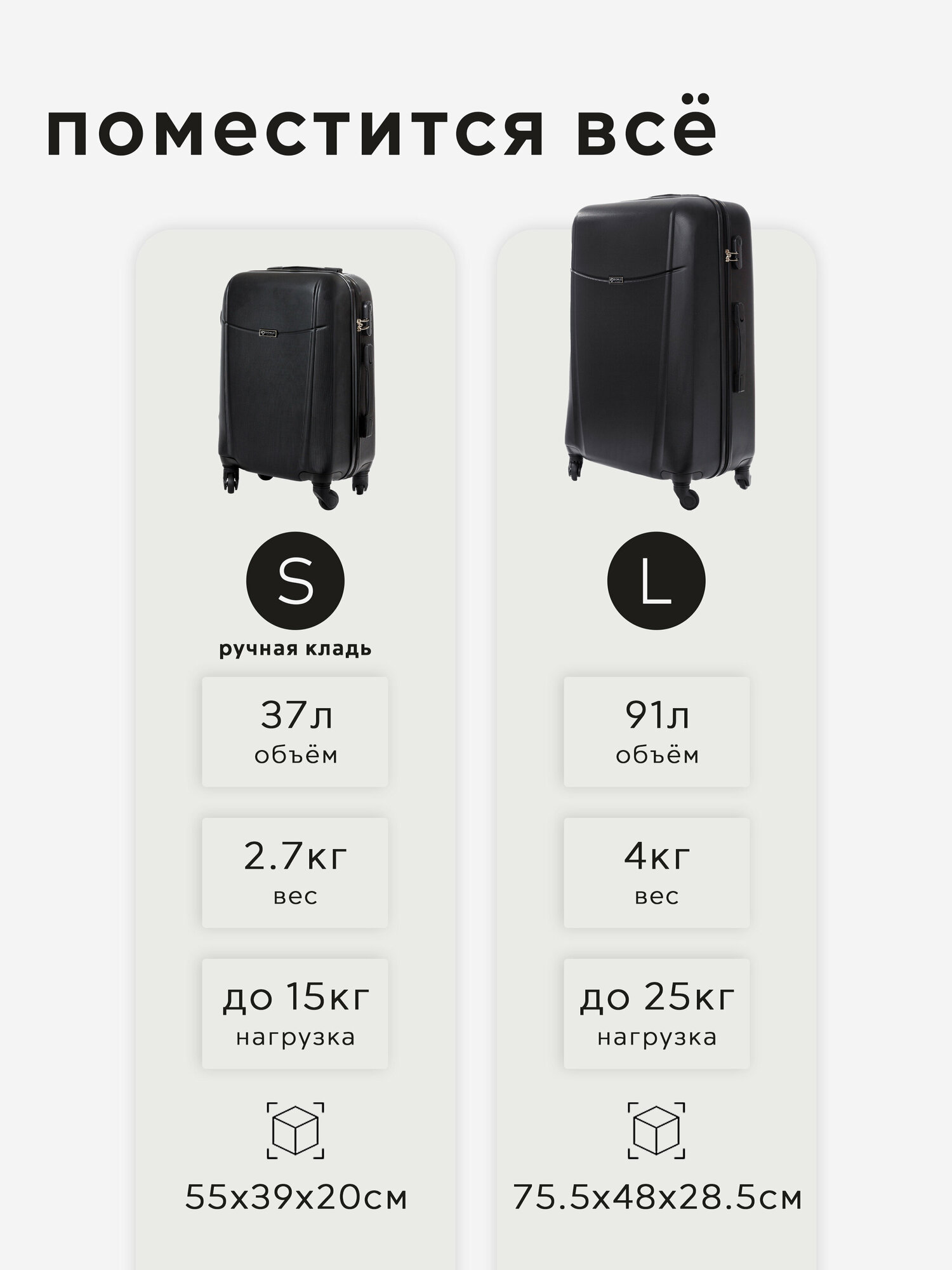 Отзывы на Комплект чемоданов 2шт, Тасмания, Черный, размер L,S 65, 55 см, 65 л, 37 л дорожный маленький ручная кладь и большой