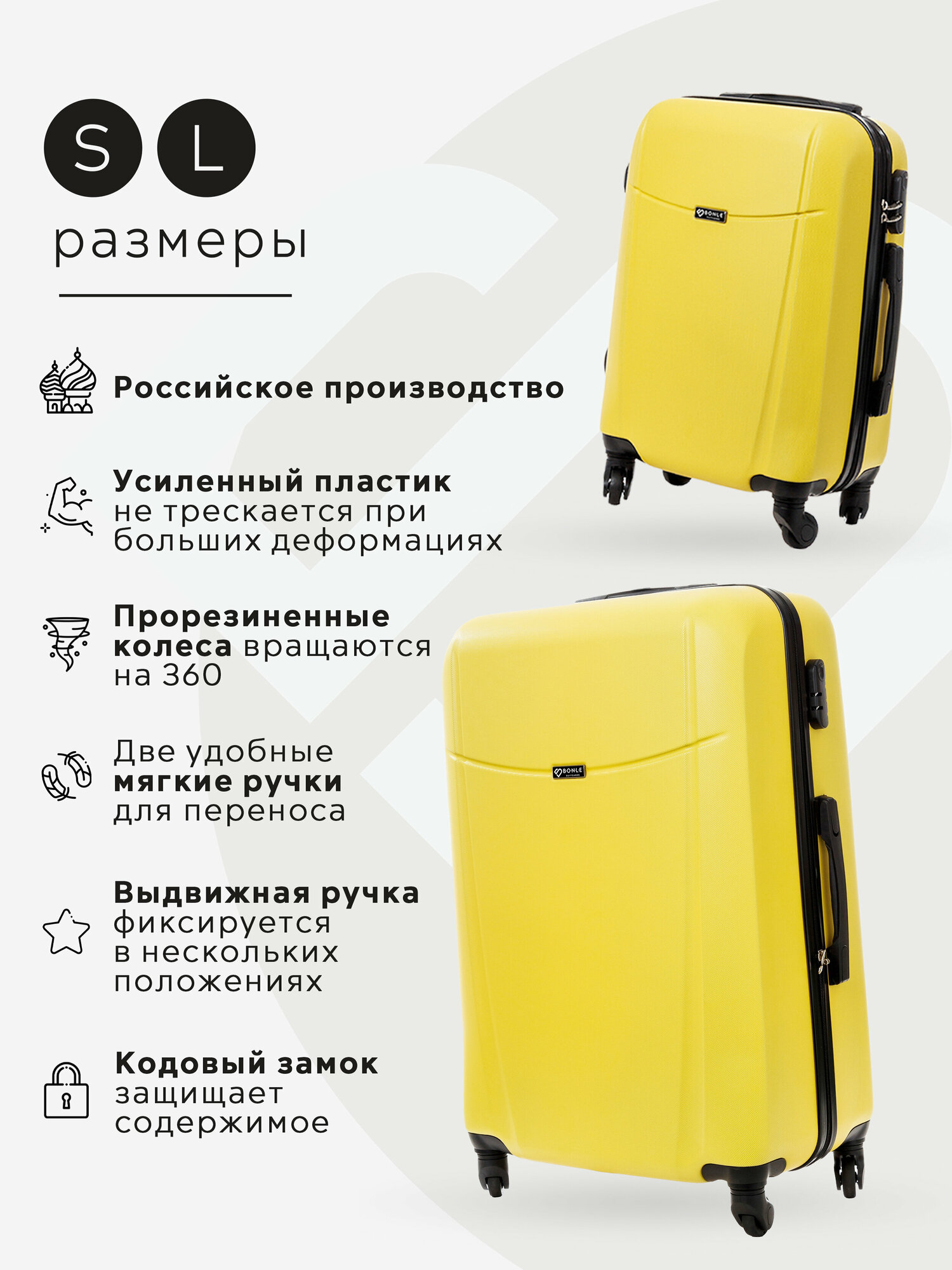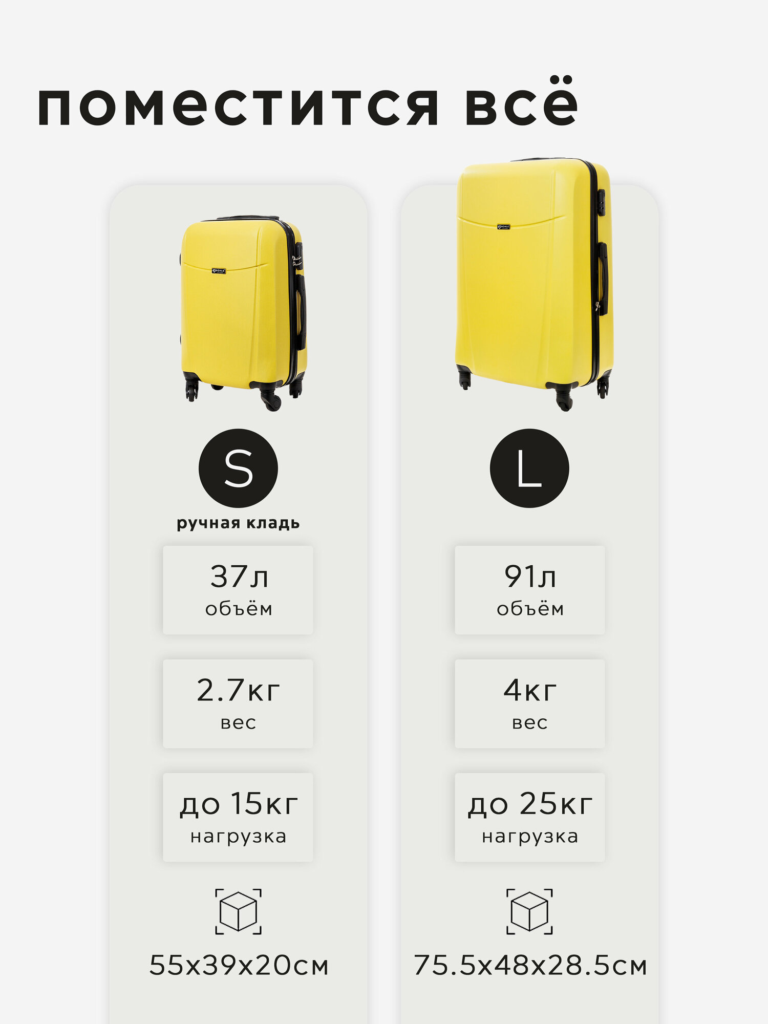 Отзывы на Комплект чемоданов 2шт, Тасмания, Желтый, размер L,S 65, 55 см, 65 л, 37 л дорожный маленький ручная кладь и большой