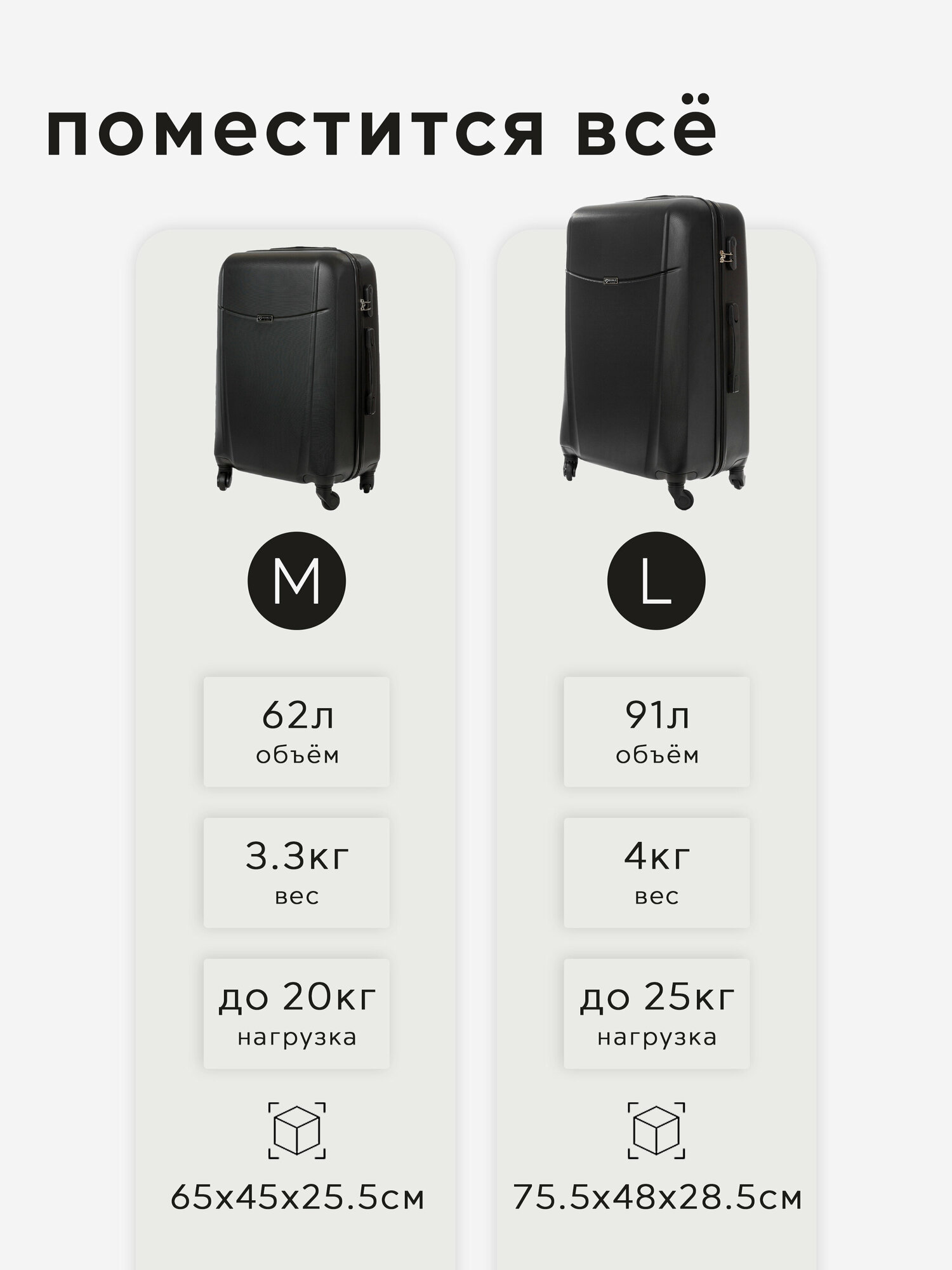 Комплект чемоданов 2шт, Тасмания, Черный, размер L,M 75,5см, 65см, 91л, 65л дорожный средний и большой информация:
