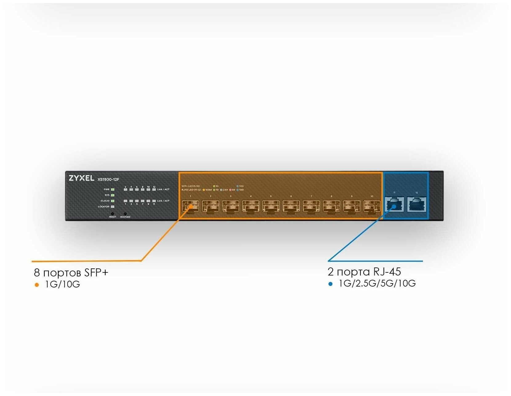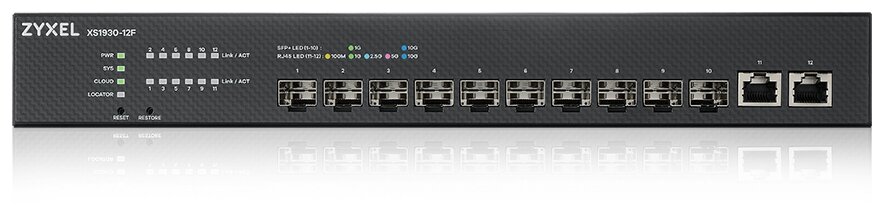 ZyXEL Коммутатор Zyxel NebulaFlex XS1930-12F Hybrid Multi-Gigabit Smart L2+ Switch, rack 19", 10xSFP+, 2xRJ-45: 1/2.5/5/10G, standalone/cloud managed