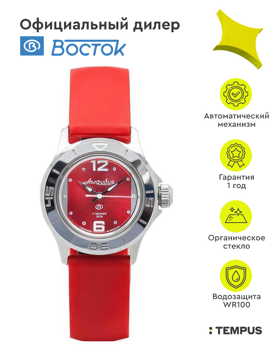 Наручные часы Восток 051224, серебряный, красный информация: