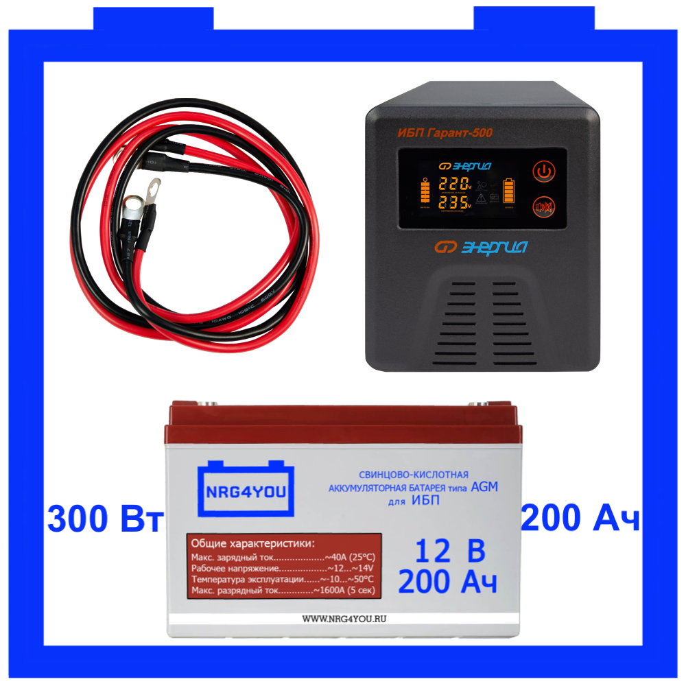 ИБП Энергия Гарант 500 Ва [300 Вт] + Аккумуляторная батарея 12В 200Ач Комплект для котла NRG4YOU