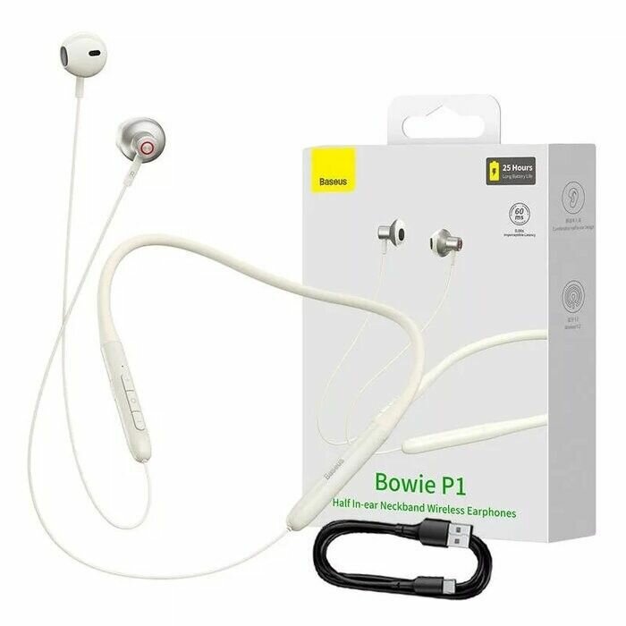 Беспроводные наушники-вкладыши Baseus Bowie P1 с шейным ремешком кремово-белого цвета (NGPB000102)