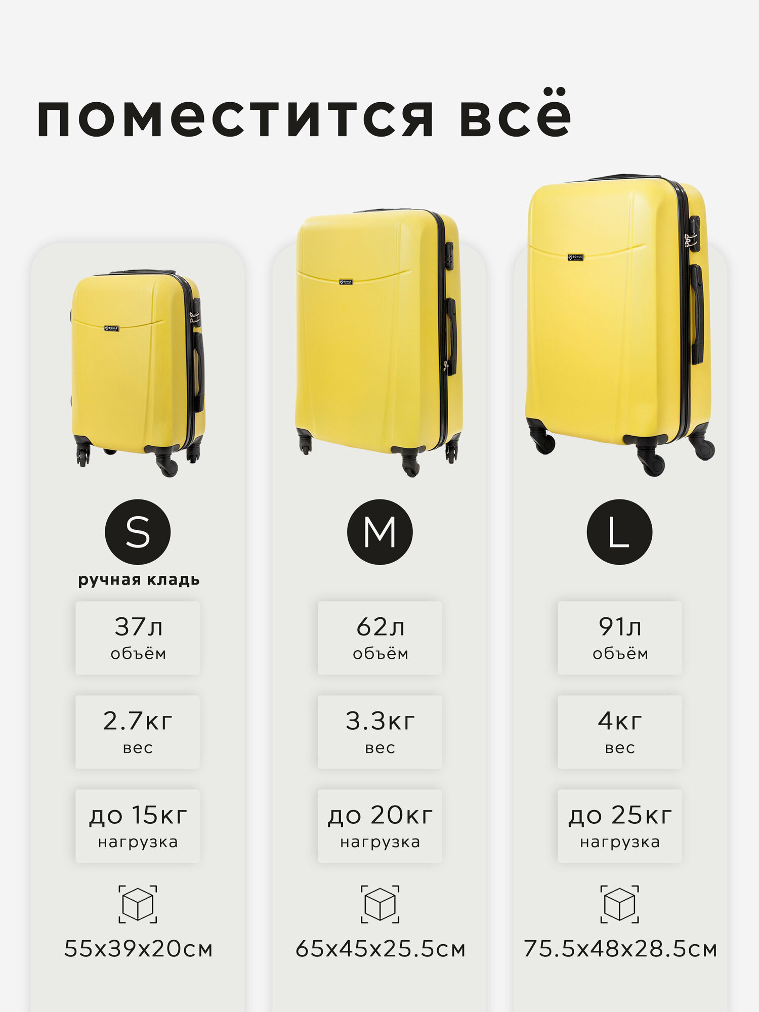 Отзывы на Комплект чемоданов 3шт, Тасмания, Желтый, размер L,M,S 75,5 65, 55 см, 91 л, 65 л, 37 л дорожный большой, маленький ручная кладь и средний