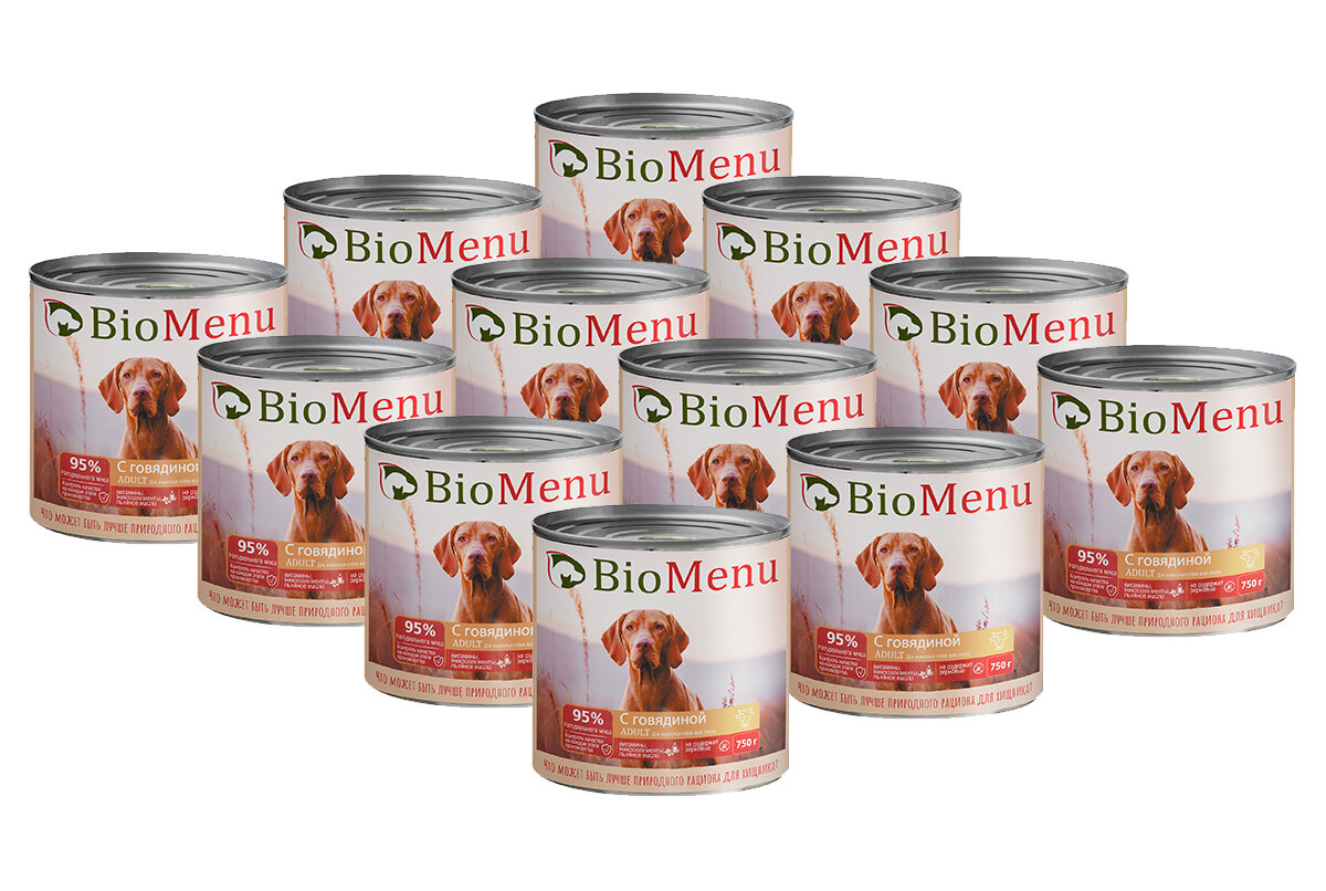 10 цен на BIOMENU ADULT для взрослых собак с тушеной говядиной (750 гр х 12 шт)