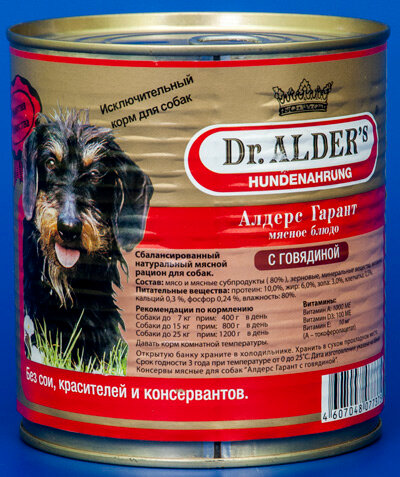 Влажный корм для собак Dr. Alder`s Алдерс Гарант, говядина 1 уп. х 1 шт. х 750 г информация: