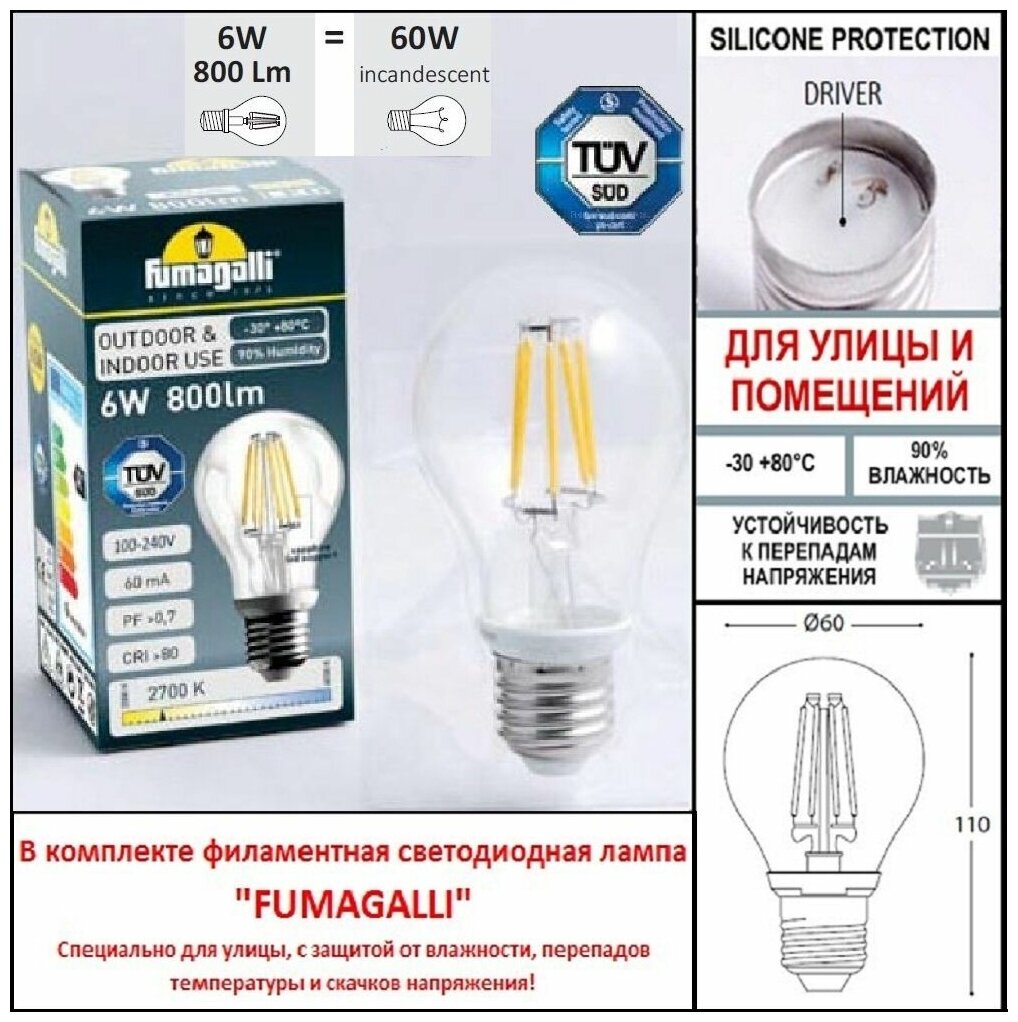 Fumagalli Уличный светильник Rut E26.157.S31.AYF1R, E27, 24 Вт