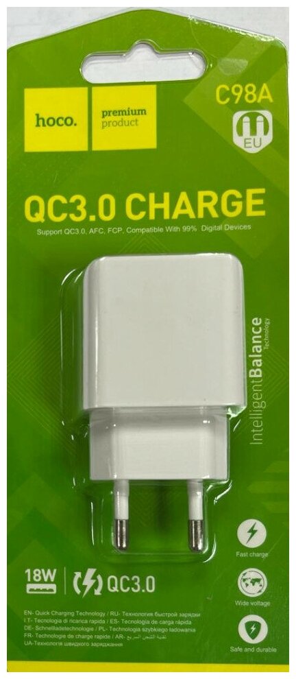 Отзывы на Сетевое зарядное устройство HOCO C98A Proton 1xUSB, 3.0A, 18W, белый