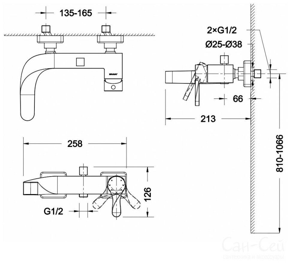 Смеситель для ванны с душем Bravat Wave F674108C-01 информация: