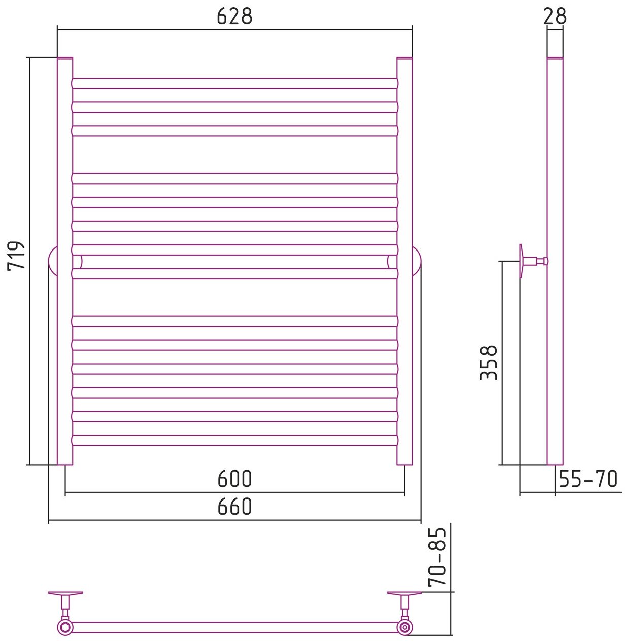 Отзывы на Полотенцесушитель водяной Стилье Универсал-53 800х600 (3+5+6) П 18 Без покрытия 00653-8060
