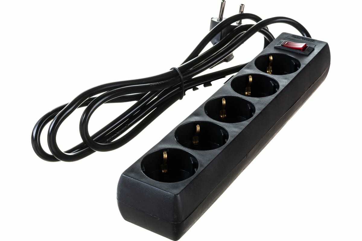Удлинитель ExeGate EC-5-1.8B 5 евро с заземлением, 1.8м, выключатель с подсветкой, черный 279355