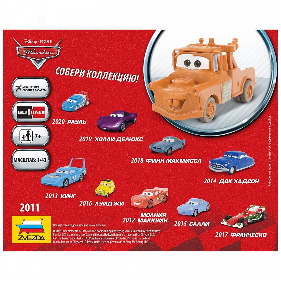 Сборная модель ZVEZDA Автомобиль из мультфильма "Тачки" Мэтр (2011) информация: